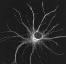 Astrocytes—named for their starlike rays, which reach out in all directions—are the most abundant of all glial cells and therefore the most abundant of all the cells in the brain. They are also the most mysterious. A single astrocyte can wrap its rays around more than a million synapses. Astrocytes also fuse to each other, building channels through which molecules can shuttle from cell to cell.